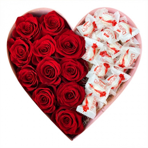 Kalp Kutuda Gül Ve Rafello Çikolata